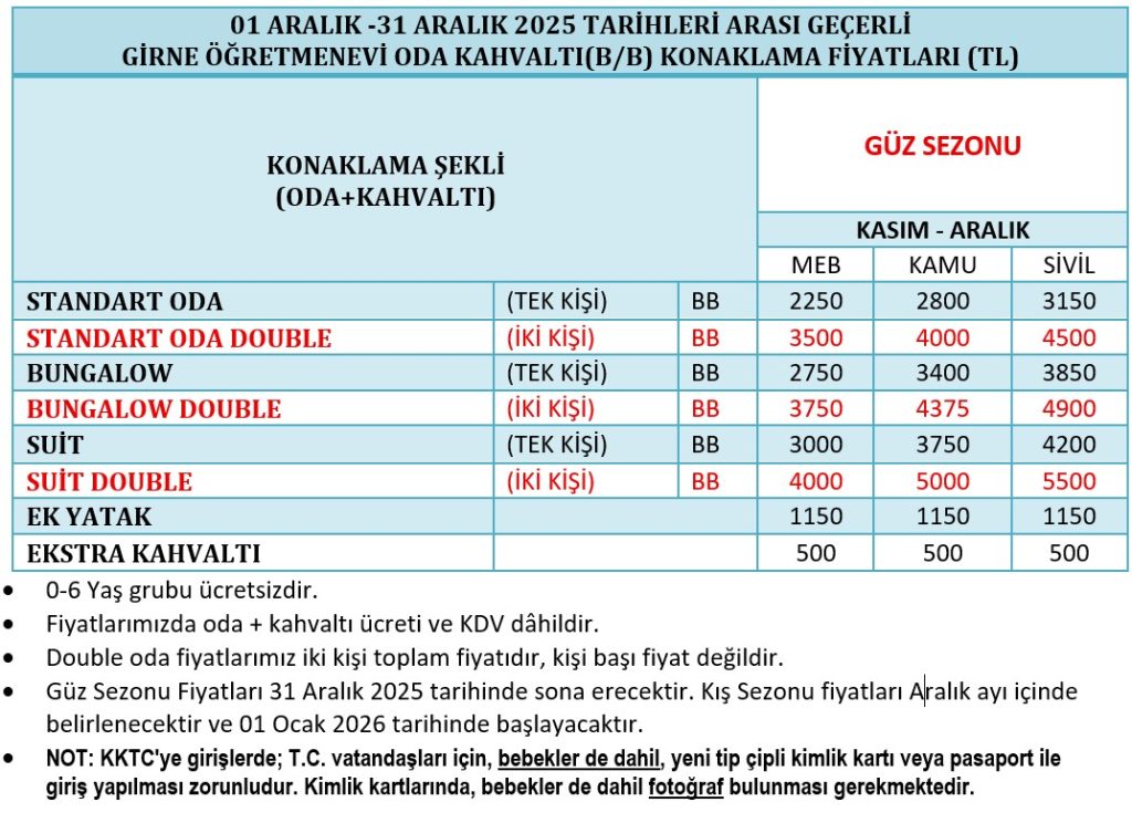ALICI ADI: GİRNE ÖĞRETMENEVİ